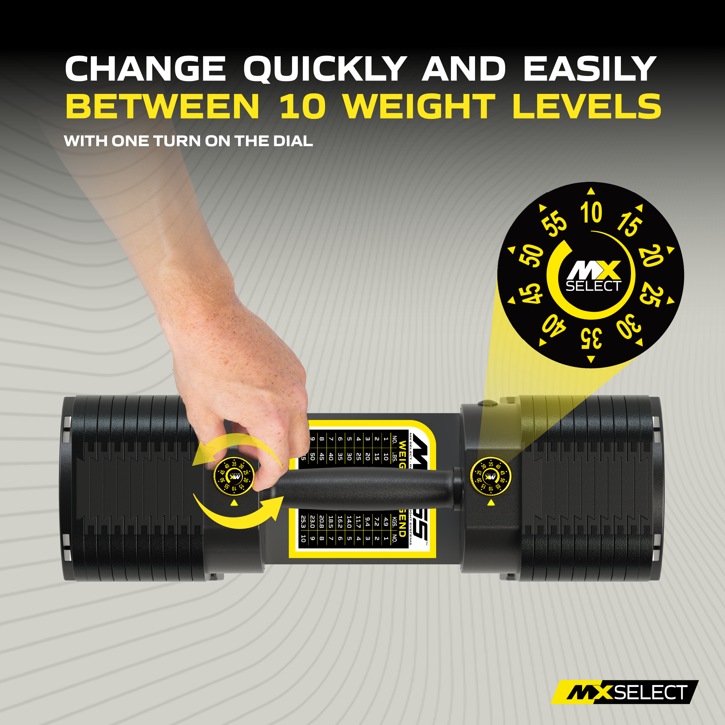 MX Select is the only brand on the market to offer both knurled straight handles and contoured rubber handles options on all adjustable dummbells.